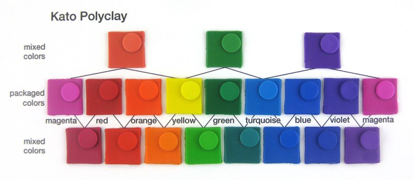 I compensated for color shifting by adding white or yellow. These came very close to the raw clay color, except the green could use some more white and/or yellow.