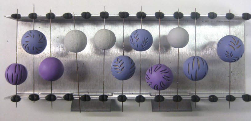 Below are some bead cores I made and dried in my improvised vertical baking rack.