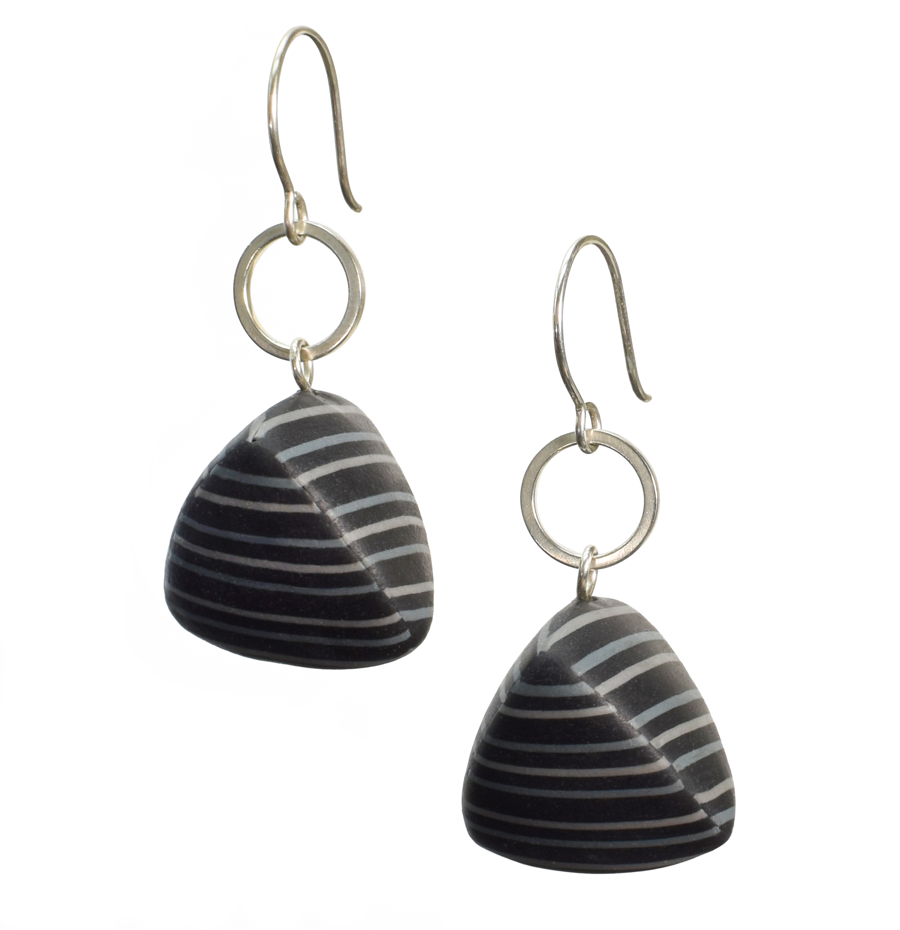 striped tetrahedron BW earrings on white 1